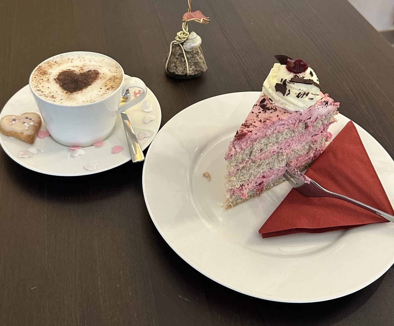 Kaffee und Kuchen-Special vom 10. bis 14. Februar: Zwei Stück Kuchen und zwei Kaffeespezialitäten kosten 12,50 Euro. Zwei Stück Torte mit zwei Kaffeespezialitäten kosten 14,50 Euro.